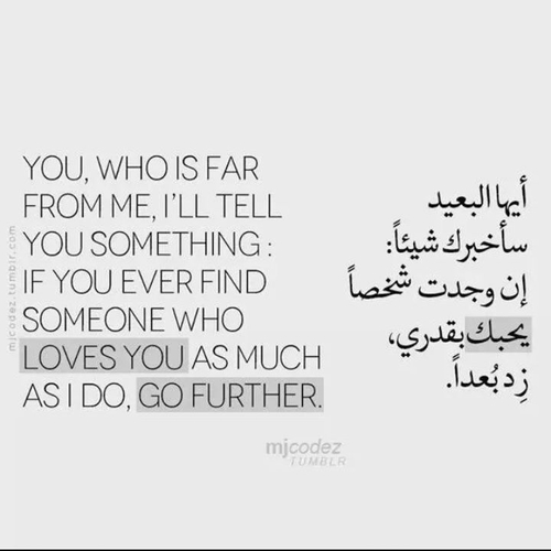 ايها البعيد سأخبرك شيئا ان وجدت شخصا يحبك بقدري زد بعدا .